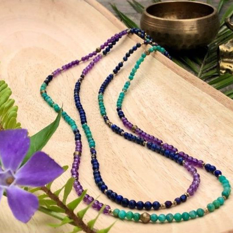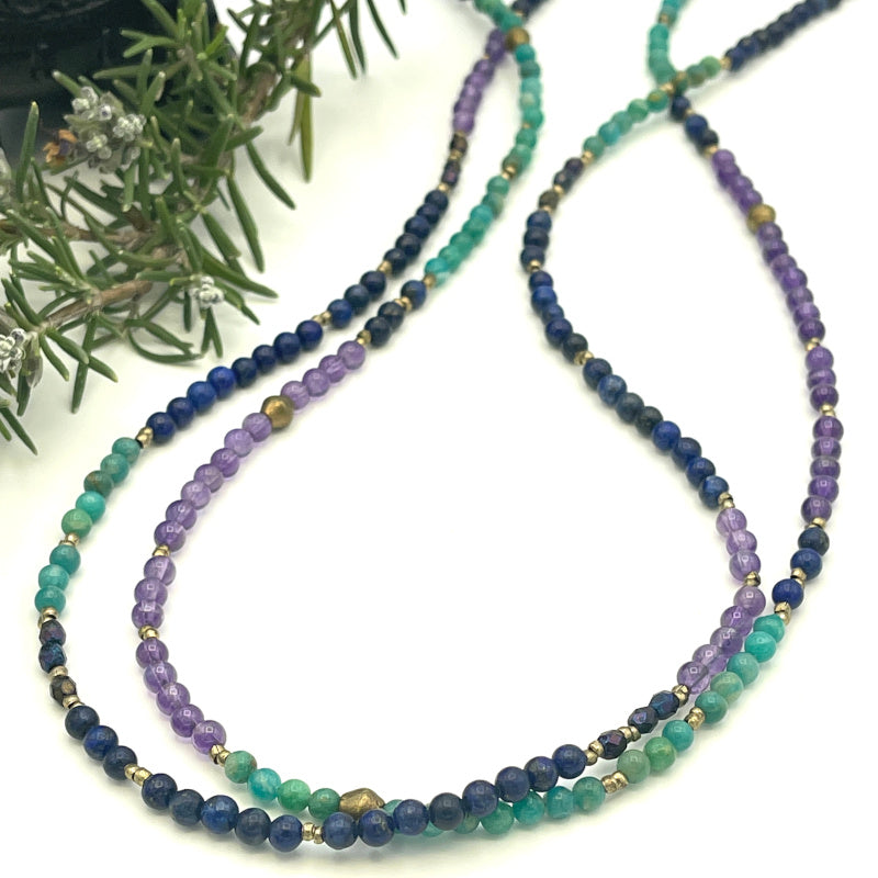 Amazonite, Amethyst & Lapis Gemstone Bead Necklaces